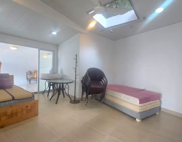 Typical gated classic house, bright and close to main road with big in-deed garden, open sea view.
